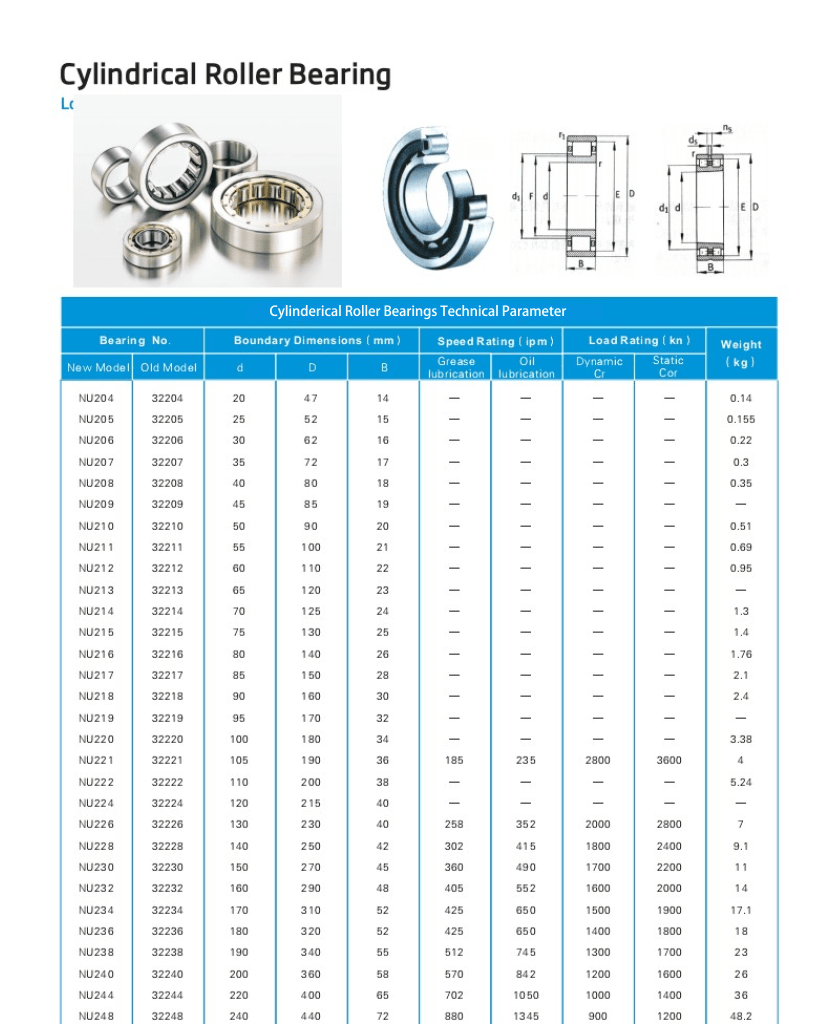 Cylindrical roller bearing from WXGZ® can be ideal for machine tools, compressors, cement pulverizers, and many other applications that require a heavy dynamic or static radial load capacity at high speeds. A cage-guided cylindrical roller bearing helps keep the rolling elements in place, which becomes more crucial as loads get heavier. A cylindrical roller bearing can support the light-thrust movement, with the double-row type also able to support axial loads in both directions.